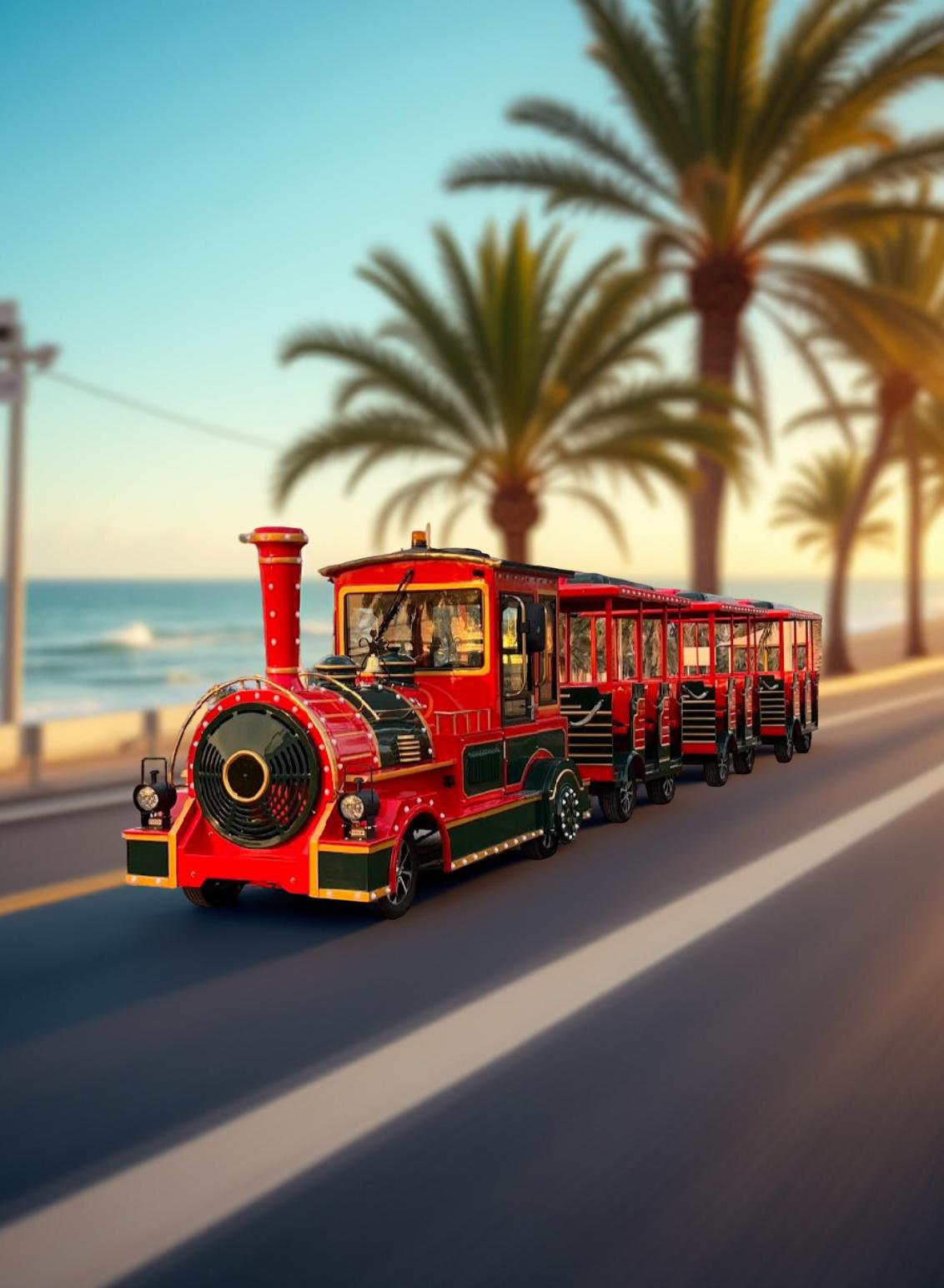قطارات ترفيهية حديثة تتمتع بجودة عالية ومواصفات متقدمة، صُممت خصيصًا للأماكن المفتوحة مثل الحدائق، والمتنزهات، والواجهات البحرية. وتتميز بتصاميم أنيقة وألوان وإضاءات جذابة، تضفي تجربة ممتعة وآمنة للزوار من العائلات والسياح، وتحوّل الجولة إلى لحظات ترفيهية لا تُنسى.
